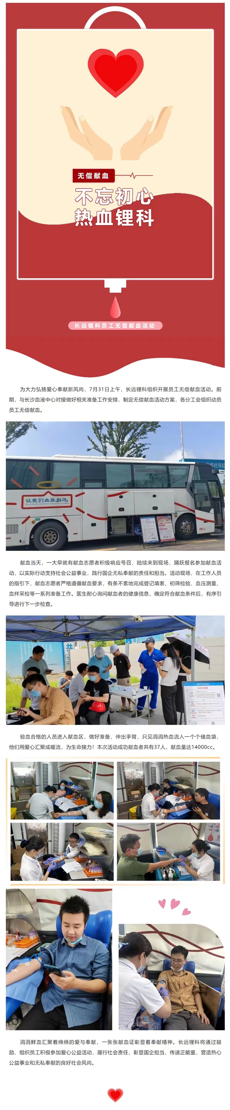 不忘初心 熱血鋰科 —— 長(zhǎng)遠(yuǎn)鋰科開(kāi)展員工無(wú)償獻(xiàn)血活動(dòng)